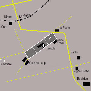 XIX ème siècleLe village déborde du berceau initial. En 1935 apparaissent au cadastre trois maisons au Boulidou, une à Vigne Croze, une au Saillis, et sept maisons au Coin du Loup. Le cimetière est installé à son emplacement actuel, pour les deux communautés catholiques et protestantes. Vers 1850 est construit un bâtiment qui sert de mairie à l'étage, avec un logement pour l'instituteur, et l'école au rez-de-chaussée. En 1859 l'axe routier Caveirac Calvisson devient l'axe principal pour rejoindre Nîmes et Sommières. La voie Romaine qui était devenue la route départementale No 10 en 1813 est définitivement abandonnée et du même coup le relais de poste des Baraques. A la même époque est réalisé l'axe routier St Gilles Clarensac.En juillet 1882 la ligne de chemin de fer PLM Nîmes le Vigan est ouverte. Un bureau de poste est ouvert à Langlade le 15 juillet 1894 et installé à son emplacement actuel en 1905. |